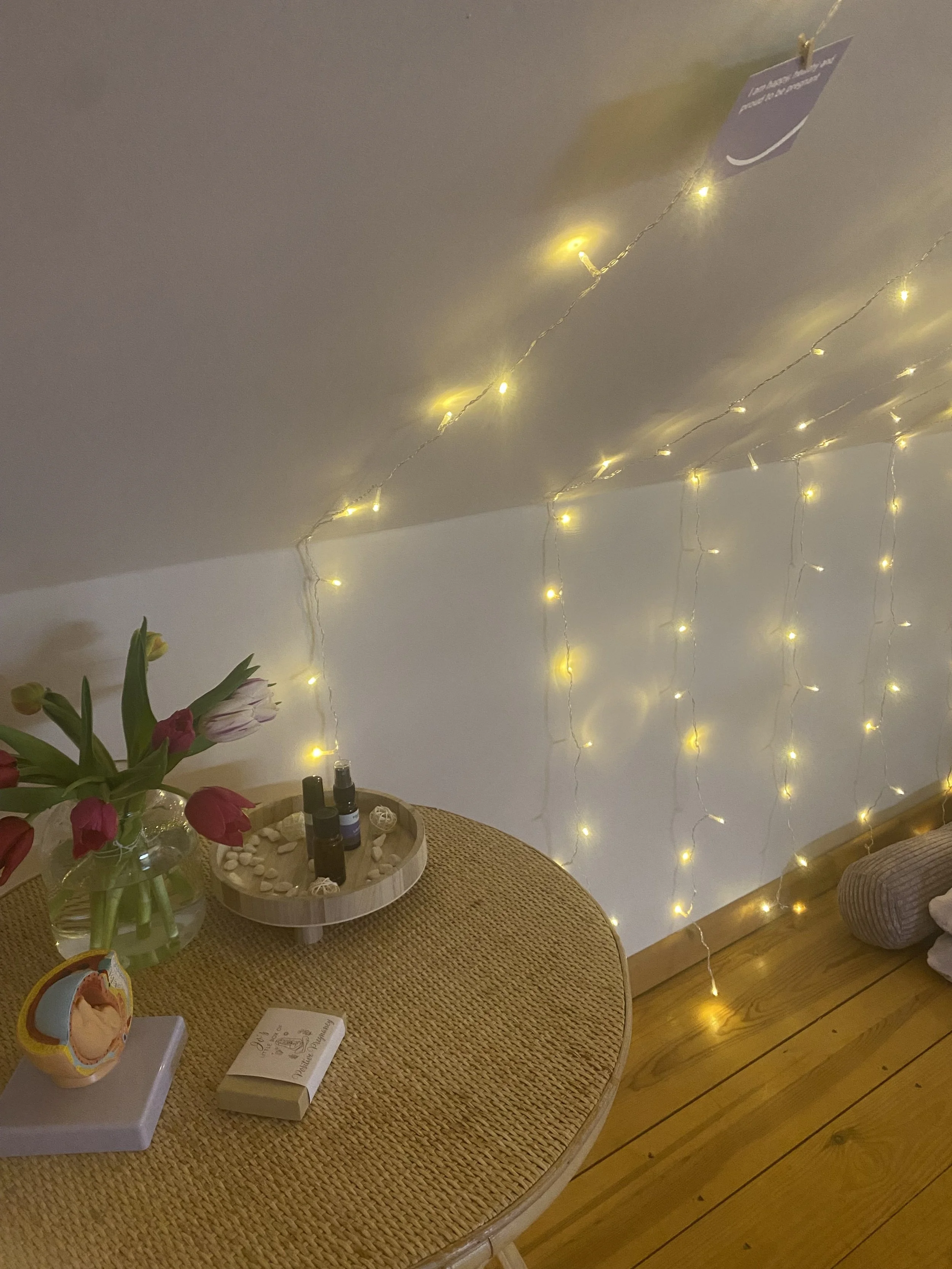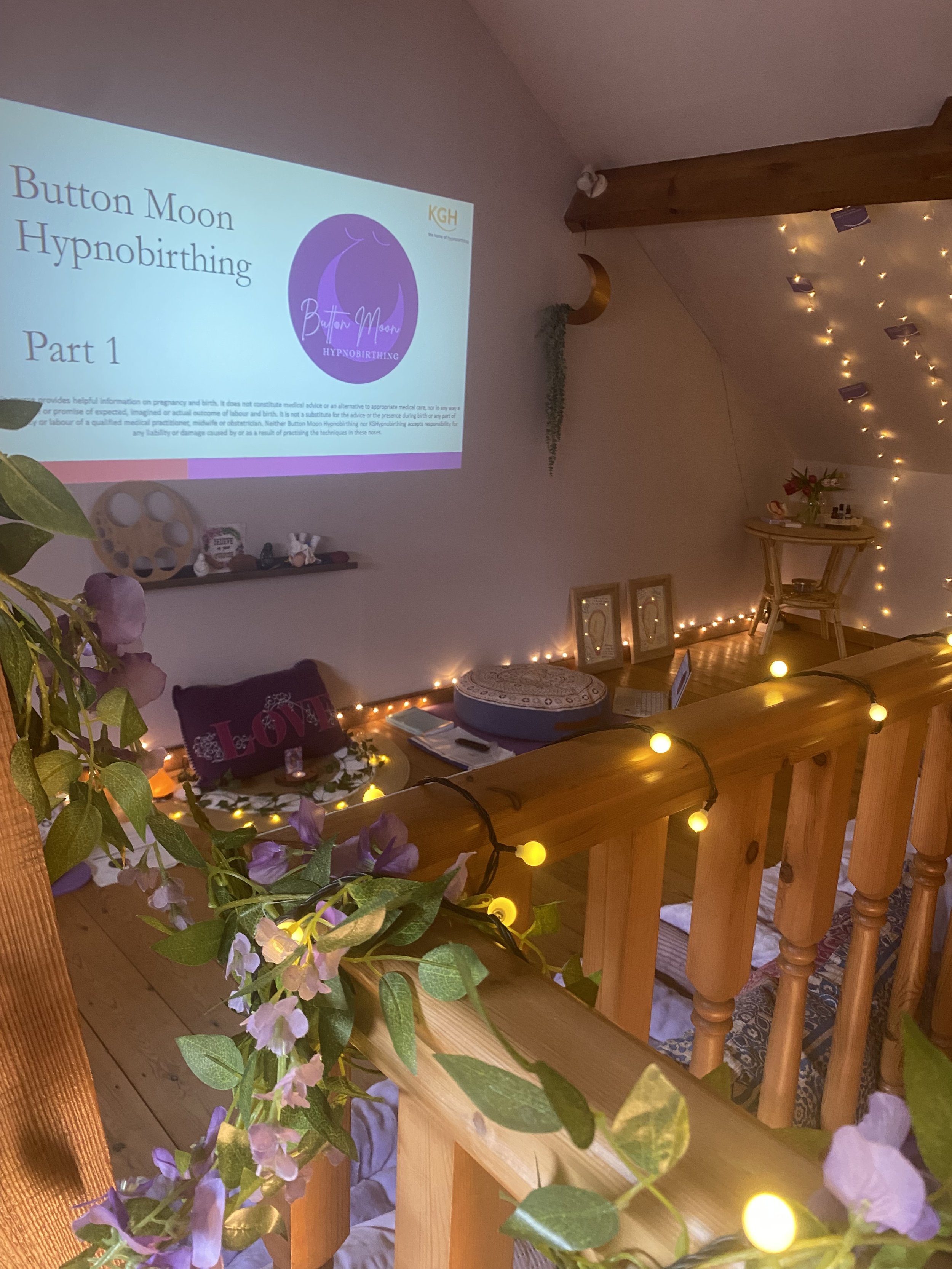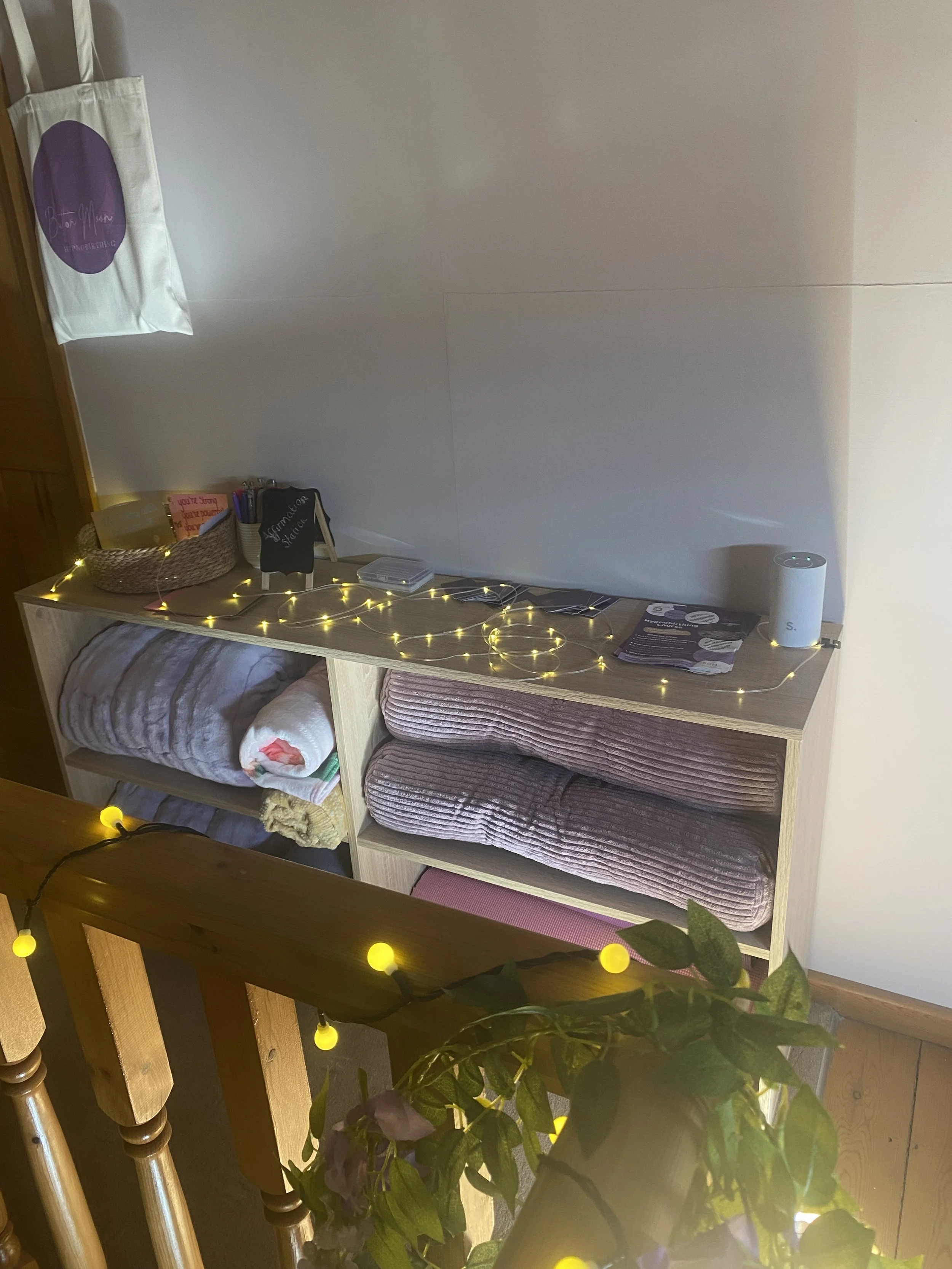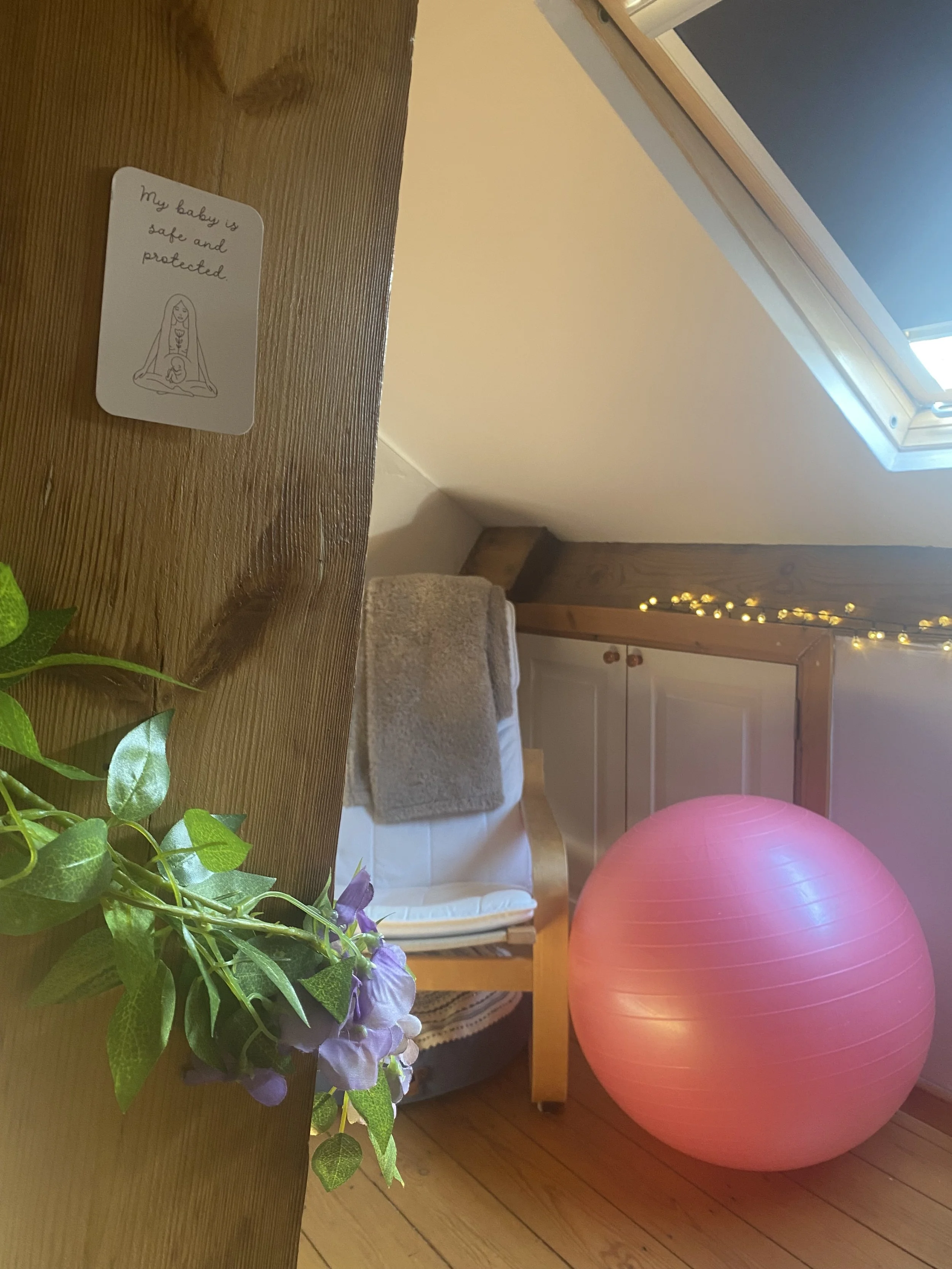 Located in Redcar our beautiful, empowering studio is ready to welcome you. When designing the studio, we really thought about how this space will be used- your comfort at the heart of everything we do. With comfy floor cushions, rocking chairs, pregnancy cushions , birthing balls, yoga mats, blankets, mood lighting, burning essential oils…and of course the refreshments! Book the studio as part of your package, whether that is for your private course or to join us in the studio for a group course. The quintessential space to prepare for birth.